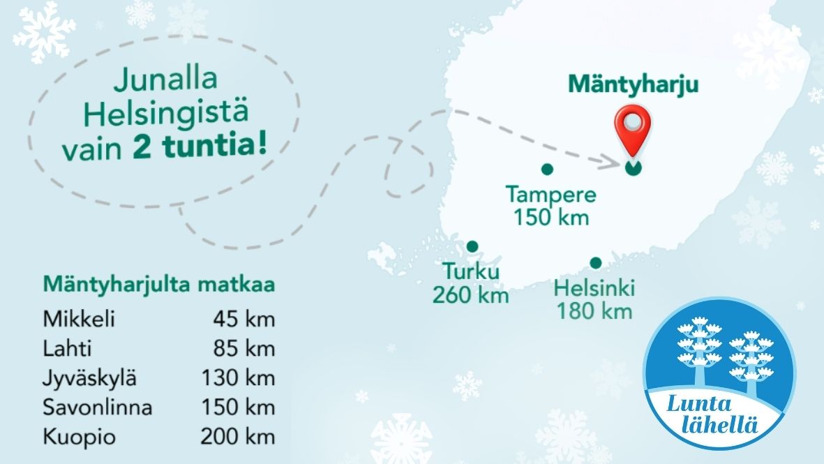 Mäntyharju onkin hyvä valinta talvilomakohteeksi perheille, jotka etsivät sujuvaa ympäristöä ulkoiluun, pulkkamäkeen, luisteluun ja yhdessäoloon. Aktiiviliikkujat löytävät monipuoliset ladut, jääreitit ja lumikenkäilymaastot, joissa voi liikkua omaan tahtiin ilman ruuhkia.
